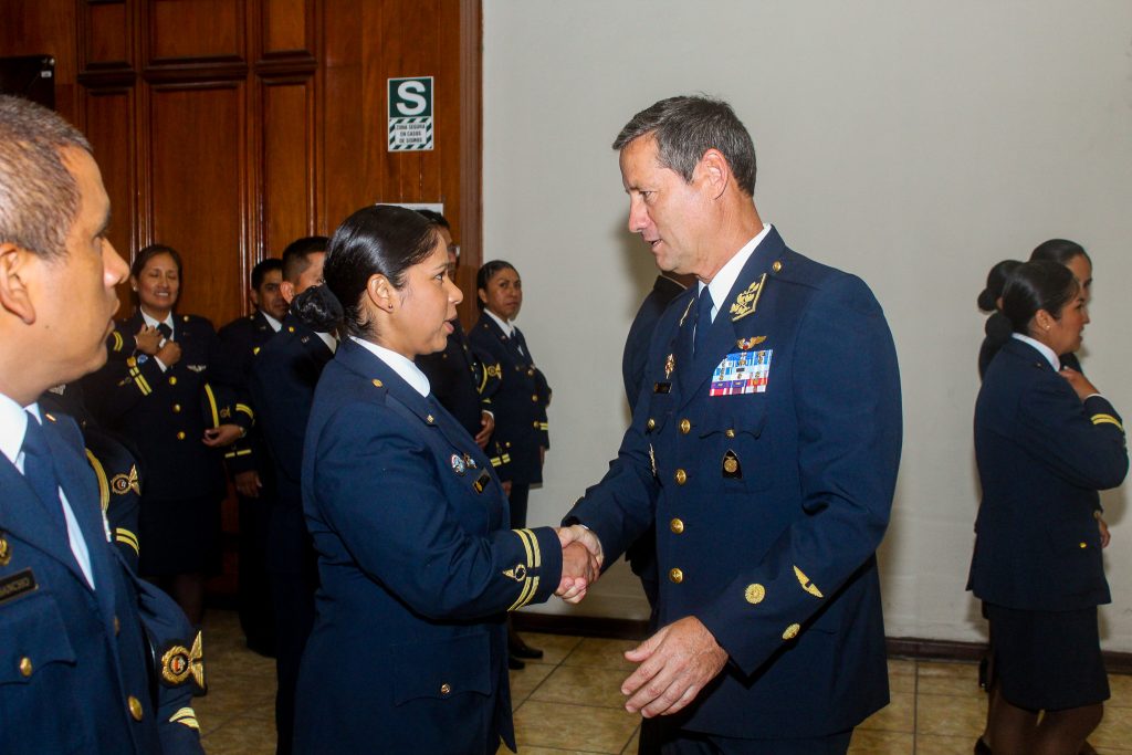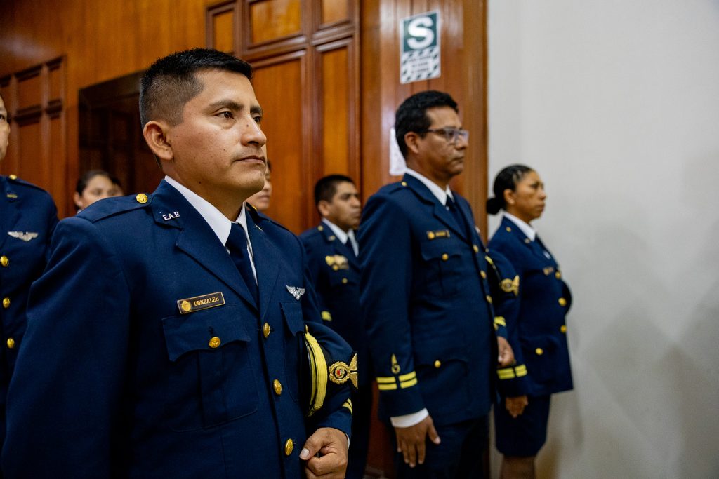 Durante la ceremonia, el Director de la ESCAP realizó el reconocimiento oficial al Técnico Inspector FAP Pedro Rafael Sotelo Magallanes, quien fue presentado como el Técnico más antiguo de la escuela, en cumplimiento de las disposiciones institucionales y como muestra de respeto a su trayectoria y años de servicio.